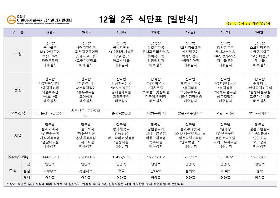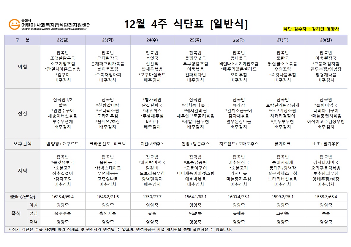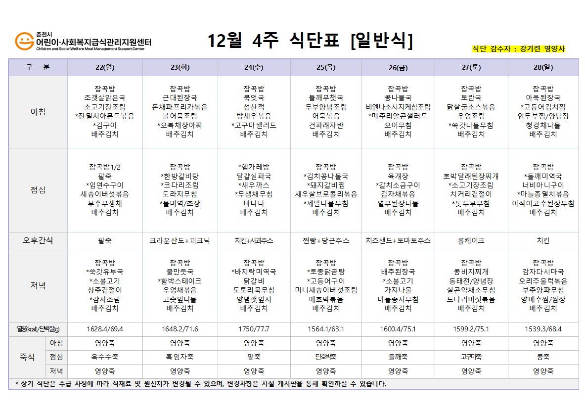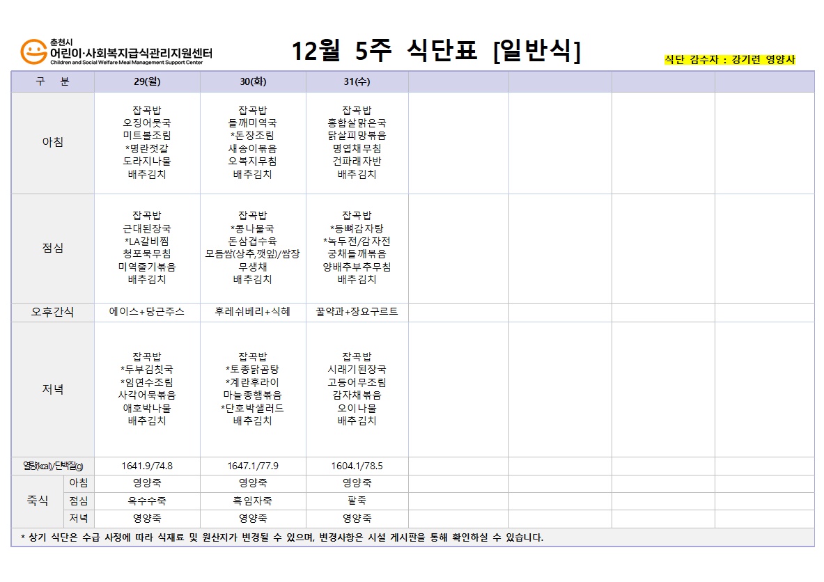 <2025³â 12¿ù ½Ä´ÜÇ¥>