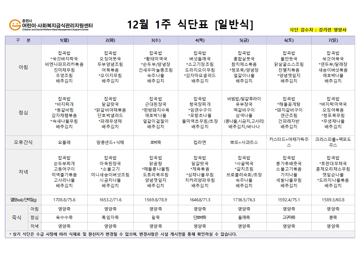 ÀúÈñ Çູ½Ä´ÜÀº ÇÏ·ç ±ÇÀå·®¿¡ ¸ÂÃß¾î º¸°Ç¼Ò ½Ä´ÜÇ¥¸¦ »ç¿ëÇÏ¿© ºÎÁ·ÇÑ ºÎºÐÀ» º¸ÃæÇÏ°í ´Ù¾çÇÏ°Ô ³ª°¡°í ÀÖ½À´Ï´Ù.